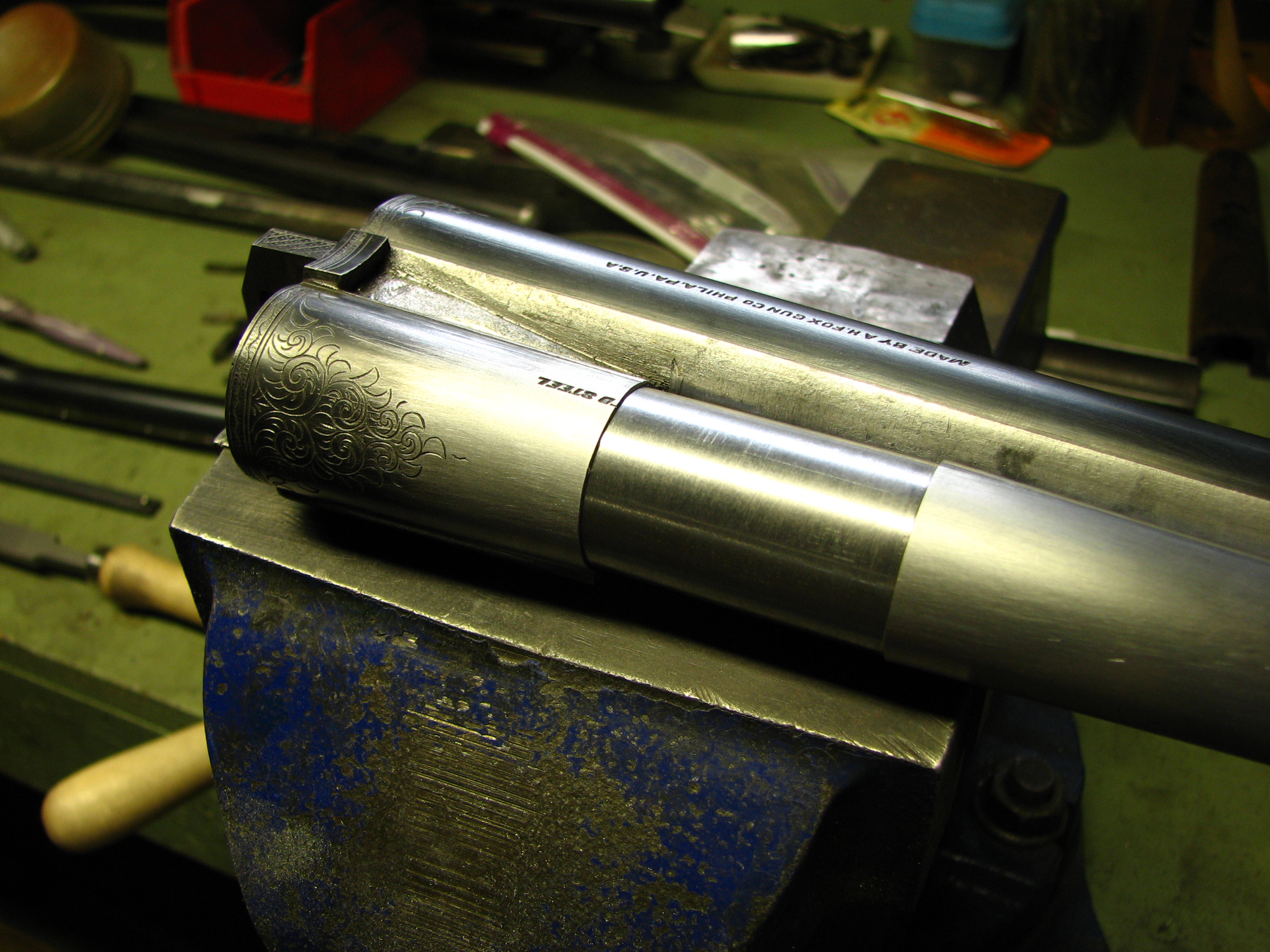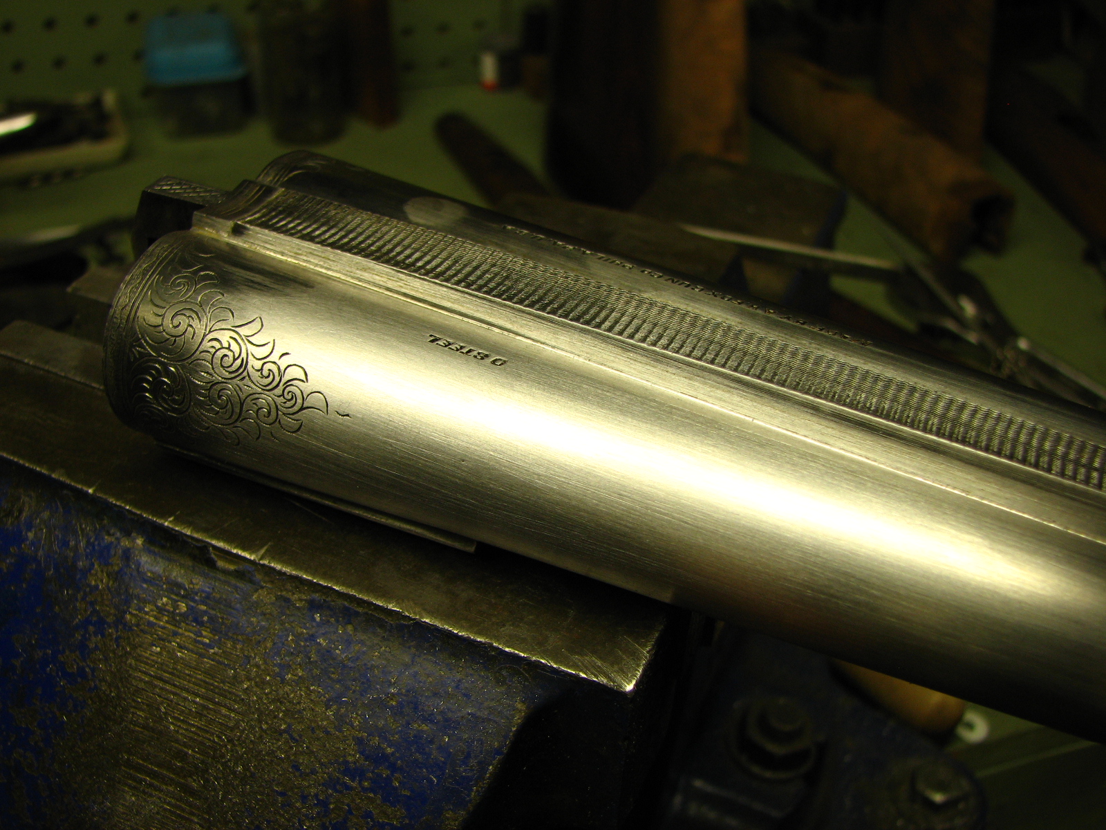 Various elements of this Smith include custom chiseled barrels and frame, Scott style crystal cocking indicators, and intercepting sears.