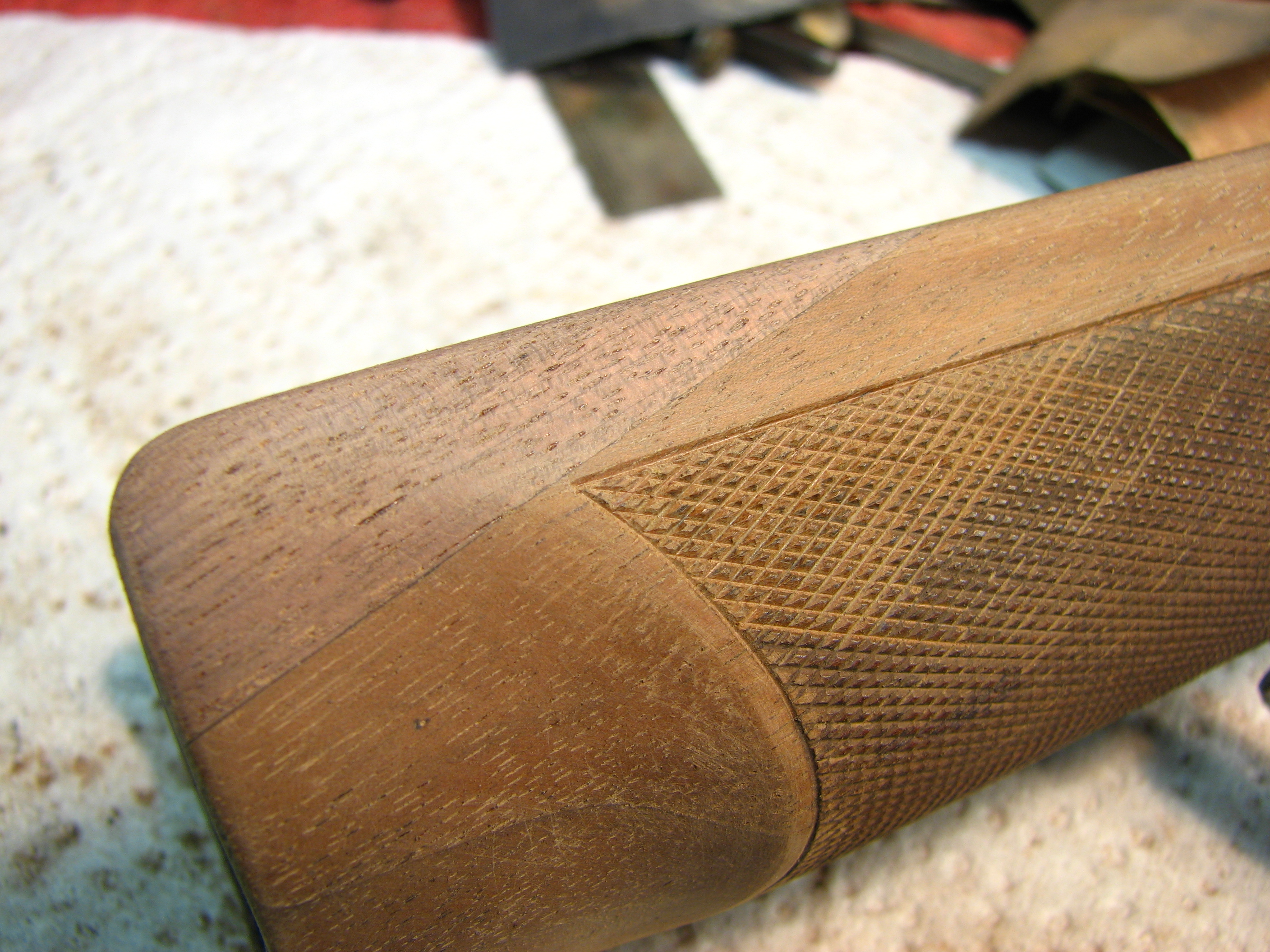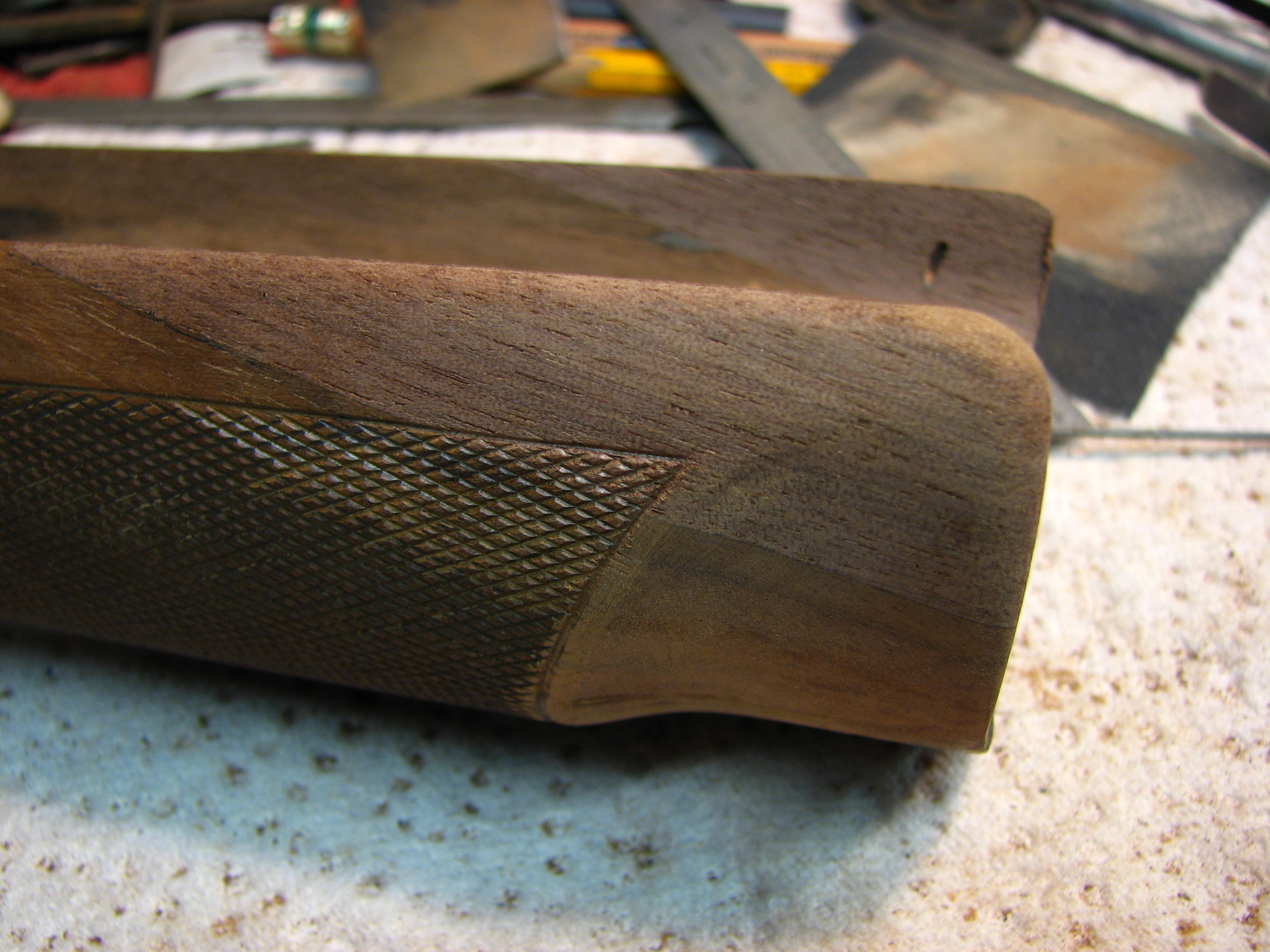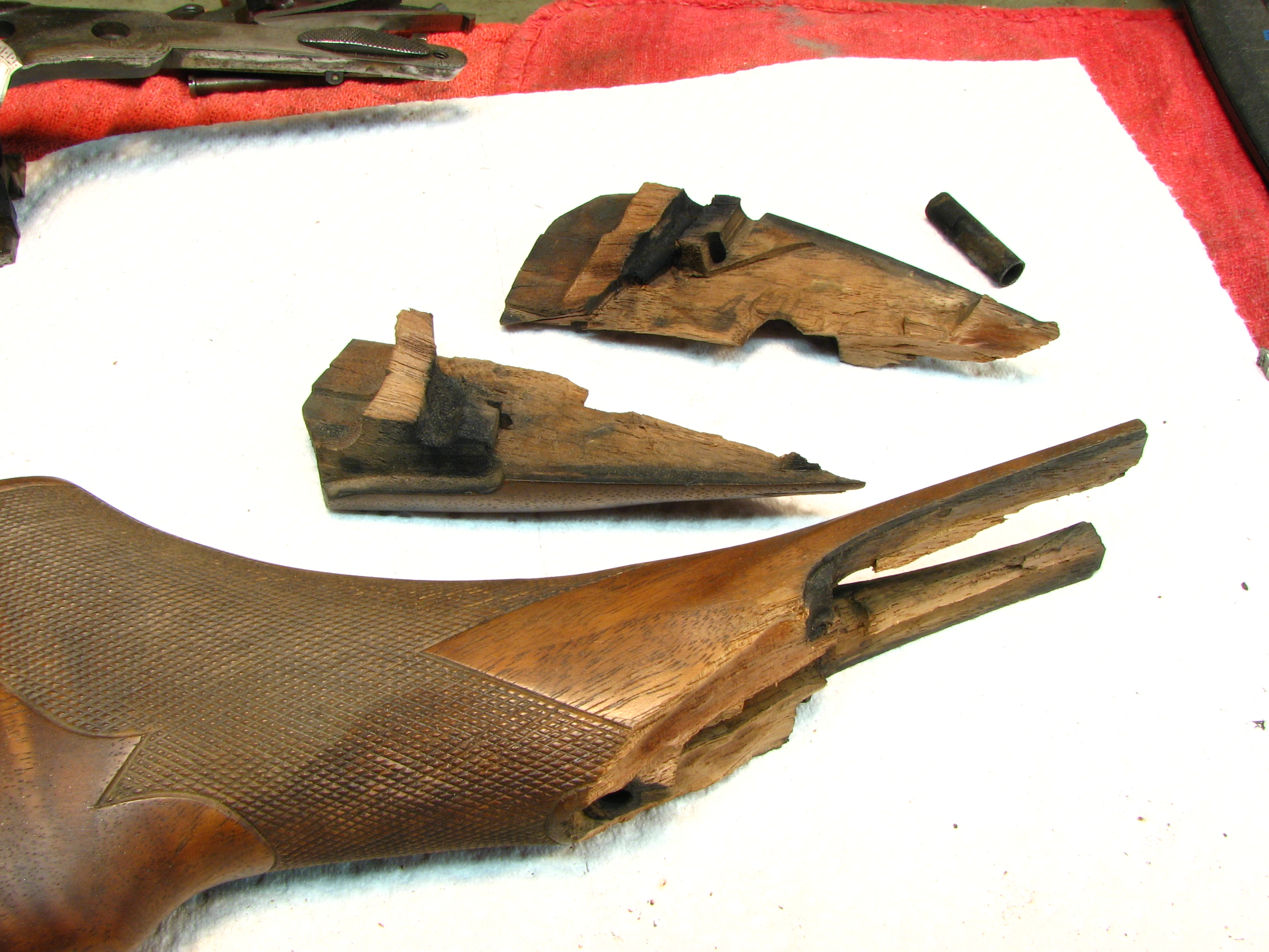 Shown are the before and after photos of a gun which was built for Gifford K. Simonds, the president of Hunter Arms Corp.