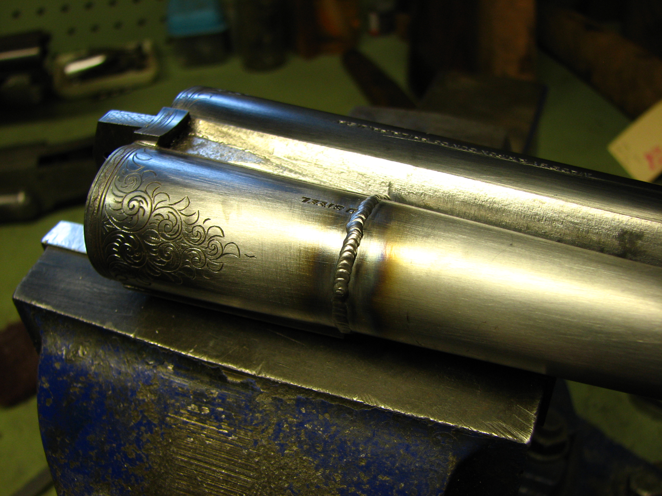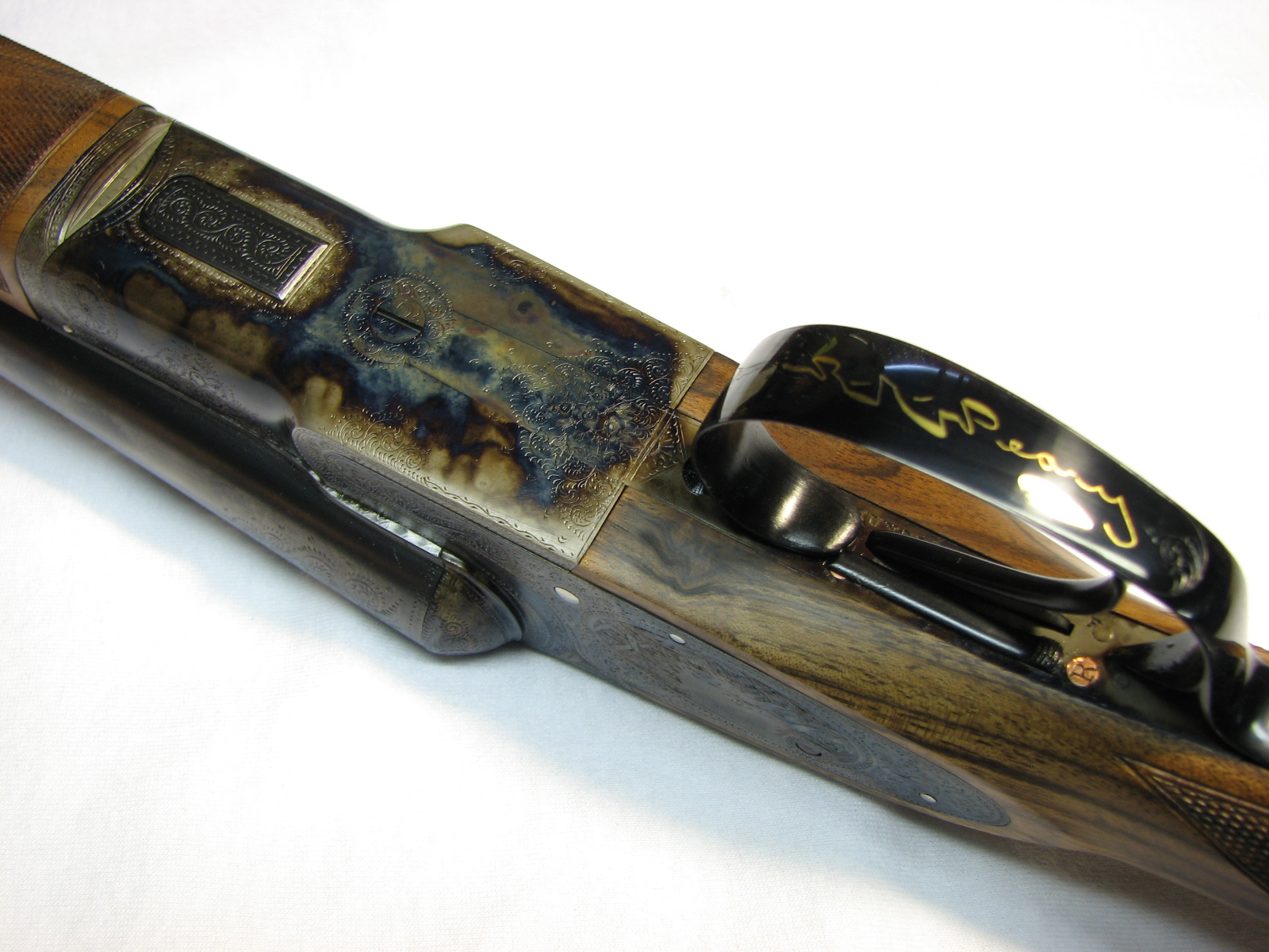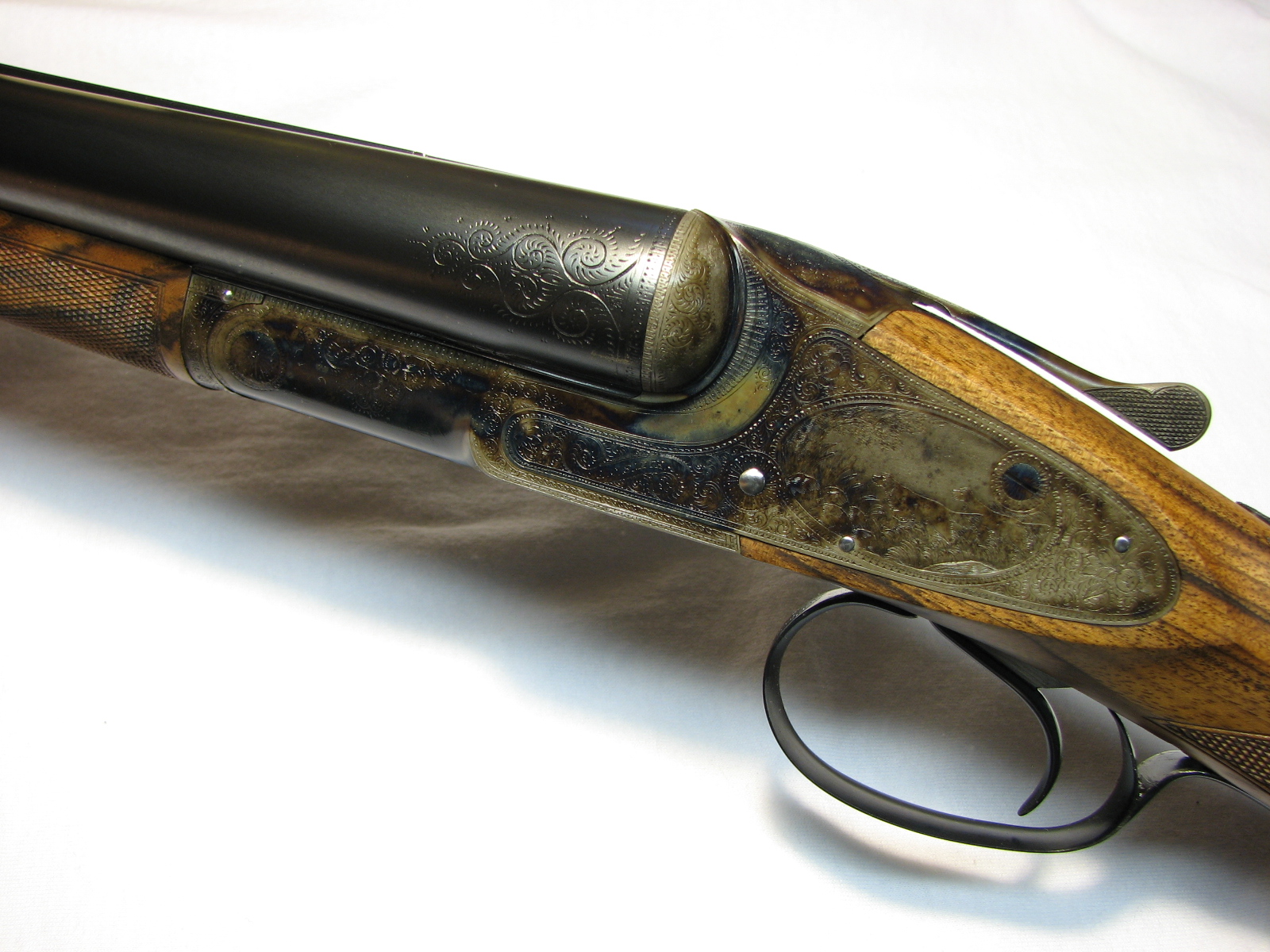 Various elements of this Smith include custom chiseled barrels and frame, Scott style crystal cocking indicators, and intercepting sears.
