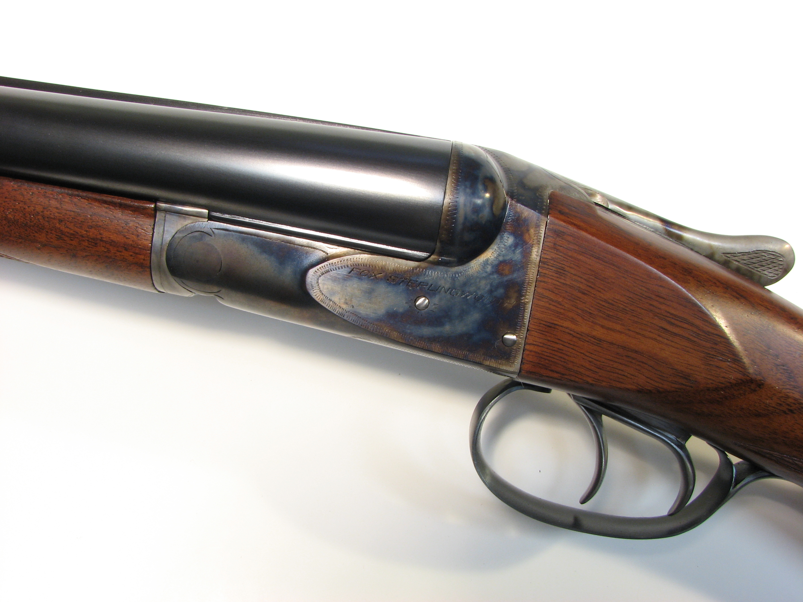 This Fox started as 1913 Sterlingworth. Some of the features of this gun include sideplates, Scott style crystal cocking indicators, and an extensively sculpted frame.